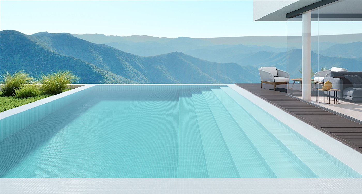 Aponte a câmara para um espaço desimpedido até ver a piscina aparecer. Note que o seu tamanho é de 8 x 4 m.