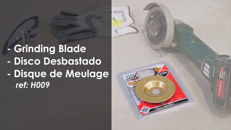 1-We fit the grinding disc – ref. H009. Don’t forget to use the safety equipment: glasses + gloves + earplugs