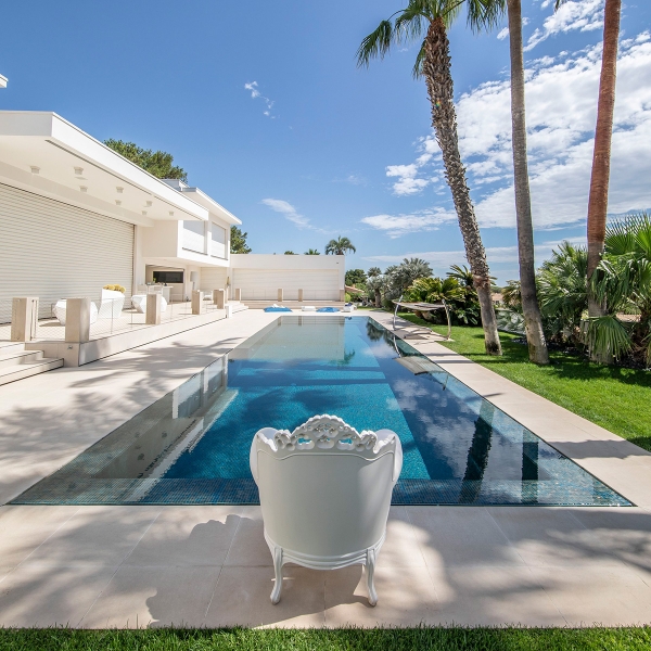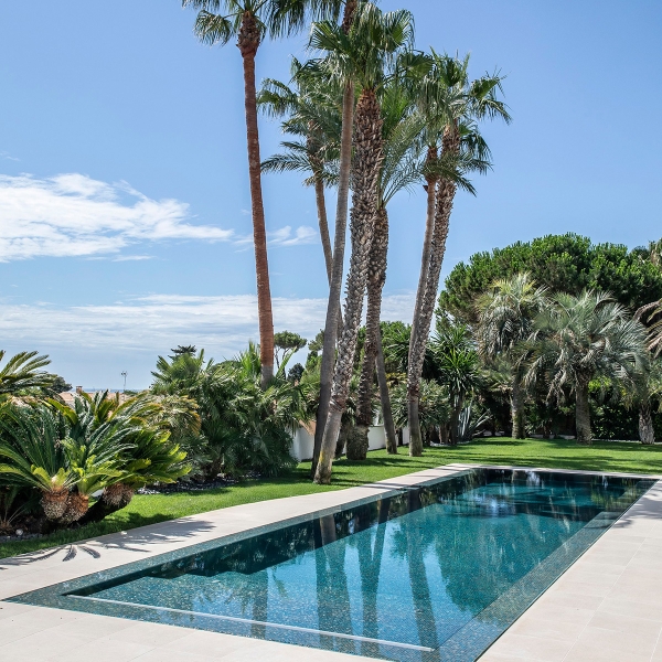 Im Herzen der exklusiven französischen Côte d´Azur, wo das Mittelmeer mit dem Himmel verschmilzt, beherbergt ein modernes, lichtdurchflutetes weißes Haus einen privaten Garten, der wie einem Traum entsprungen scheint. Zwischen Palmen, die sich sanft im Wind wiegen, sticht ein elegantes rechteckiges Schwimmbecken hervor, das mit dem Bali Stone Glas-Mosaik aus der Zen-Kollektion von Ezarri verkleidet ist - einem Material, das Schönheit, Funktionalität und Langlebigkeit vereint.