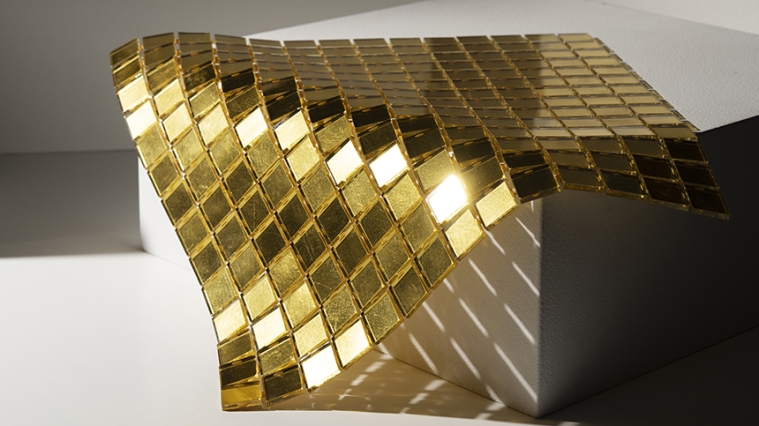 12 references of 25mm tiles made from cast 24 carat gold, rolled in sheets and wrapped in a protective layer of glass.
