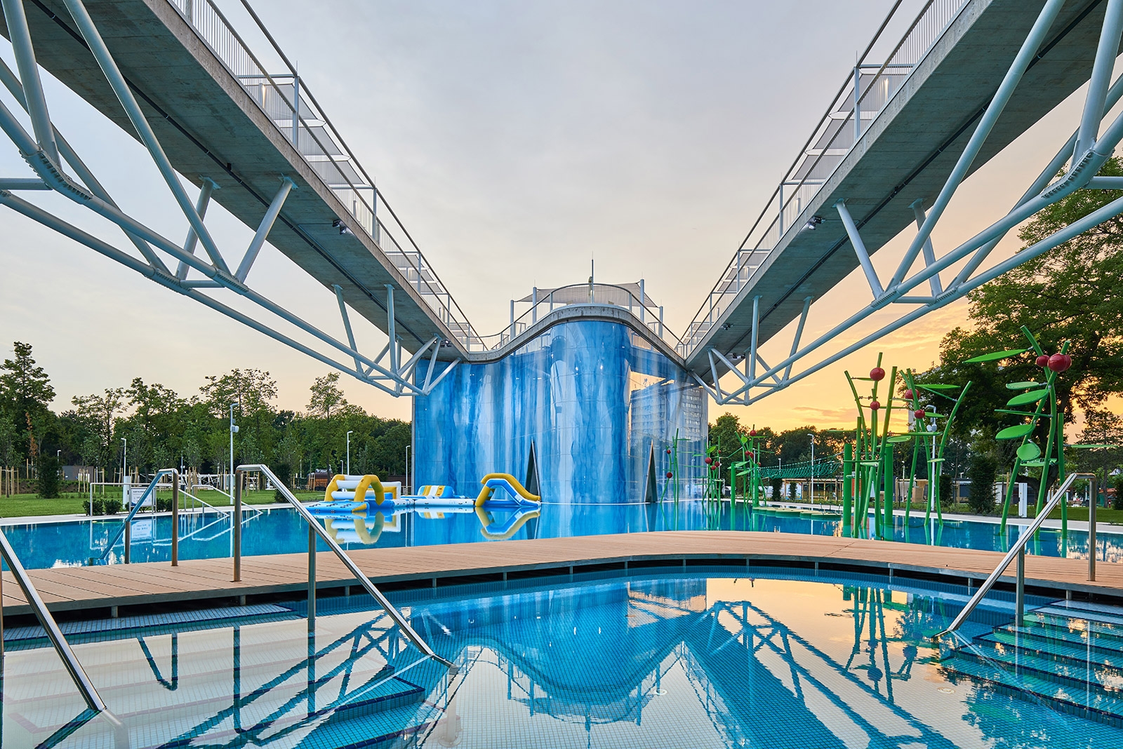 Además, este gran complejo de ocio, en el bosque que hay junto a esta ciudad, quiere convertirse en el símbolo de Debrecen en este siglo XXI. Es una suma de tecnología, materiales, diseño y arquitectura con un fuerte componente medioambiental dedicado al ocio y al deporte en el que el trabajo de Ezarri brilla con luz propia.