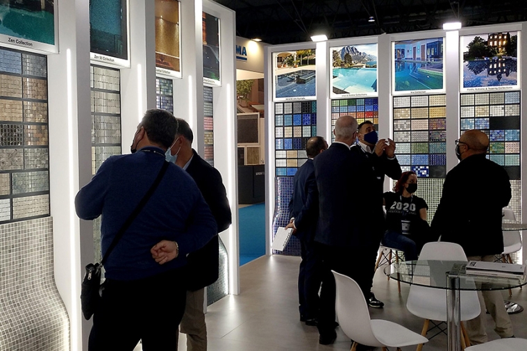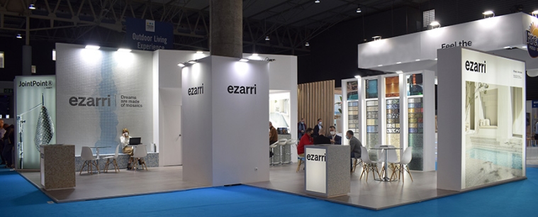 Durante la feria hemos realizado una presentación en exclusiva de nuestra gama de productos, con una protagonista muy especial: la nueva Aquarelle Collection. Una puesta en escena envuelta en la nueva imagen de marca ezarri y contando con el respaldado de un equipo de profesionales y amantes del mosaico de vidrio reciclado que han logrado atraer a nuestro Stand más de 200 visitas.