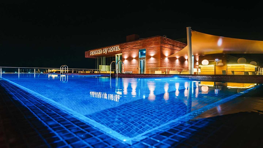 Football, Champions League, Euro, Real Madrid, avant-centre, champion, coupes, victoires, buts. Tous ces mots caractérisent le footballeur Cristiano Ronaldo qui laisse un instant le terrain de foot pour parrainer une aventure entrepreneuriale basée sur un réseau d’hôtels qui mise, pour son attractivité, sur son image et pour laquelle il a choisi Ezarri Mosaico pour mettre en valeur la grande piscine extérieure.