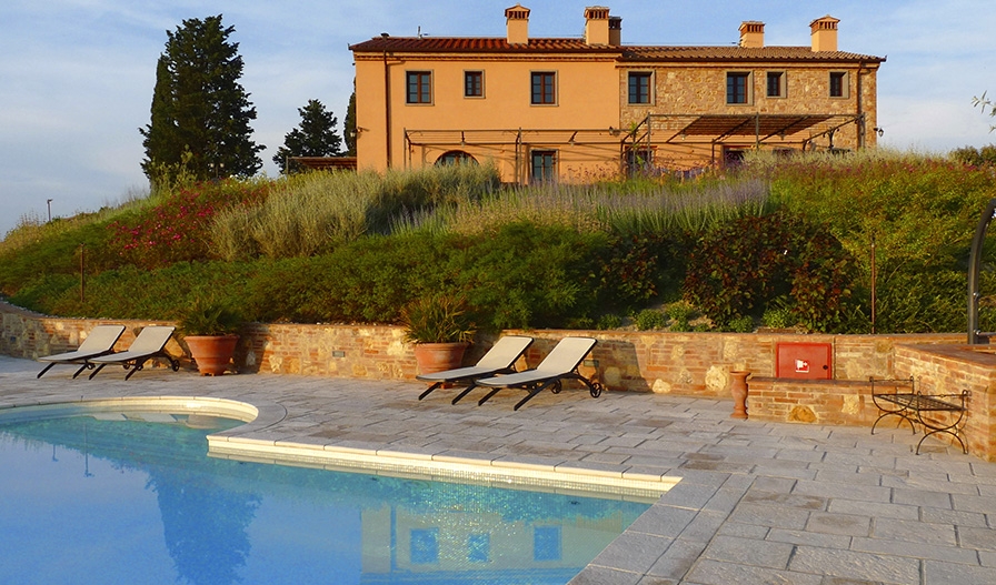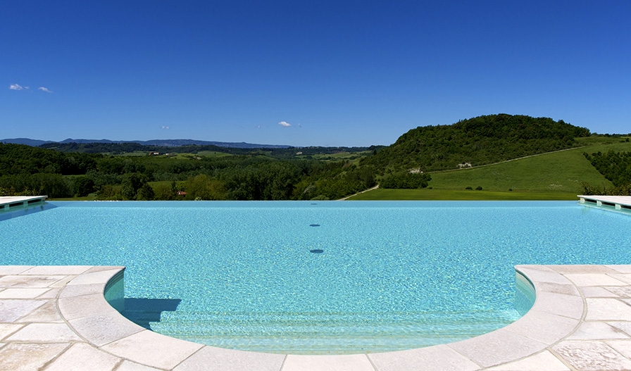 In the heart of Tuscany, one of Europe’s most attractive tourist destinations, between the beautiful cities of Pisa, Siena or Florence, a villa turned into a farmhouse hotel decided to expand its offer with an infinity pool that could offer clients a haven of coolness and peace surrounded by the most soght-after landscape in a privileged environment. Ezarri Mosaico accepted the challenge and has already become a reference for the rural tourism of this beautiful region in Italy.